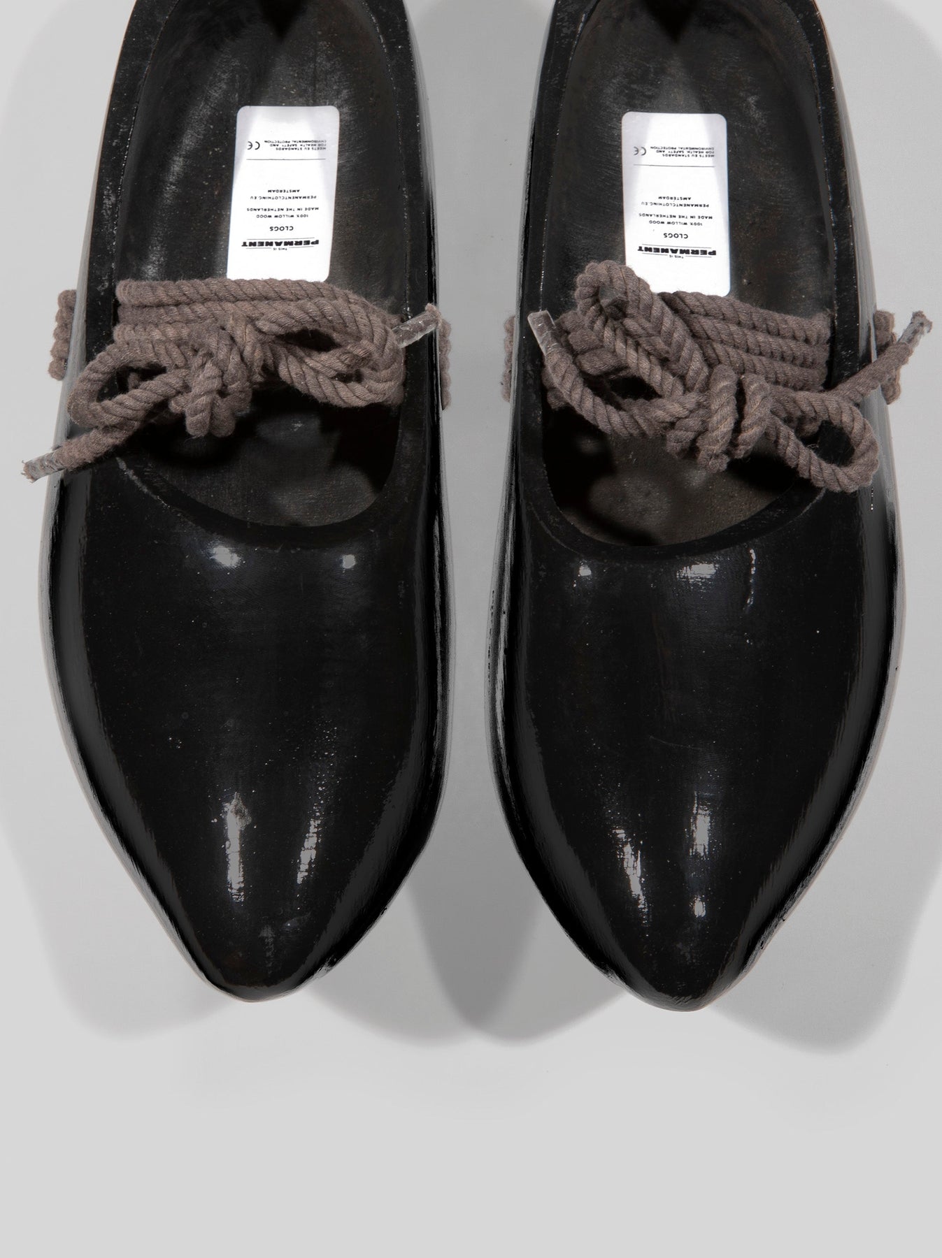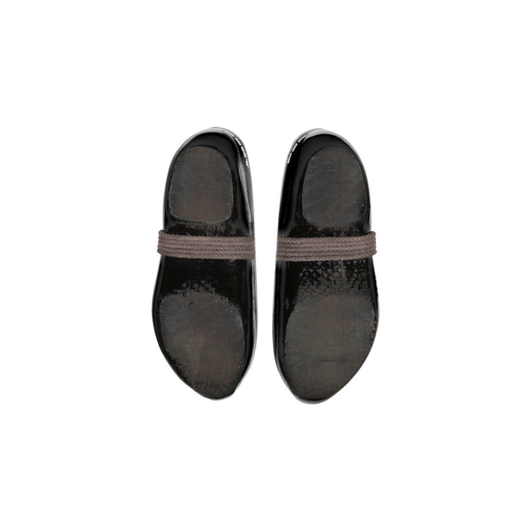 The clogs are authentically handmade in The Netherlands and are painted with water-based black varnish derived from renewable sources.