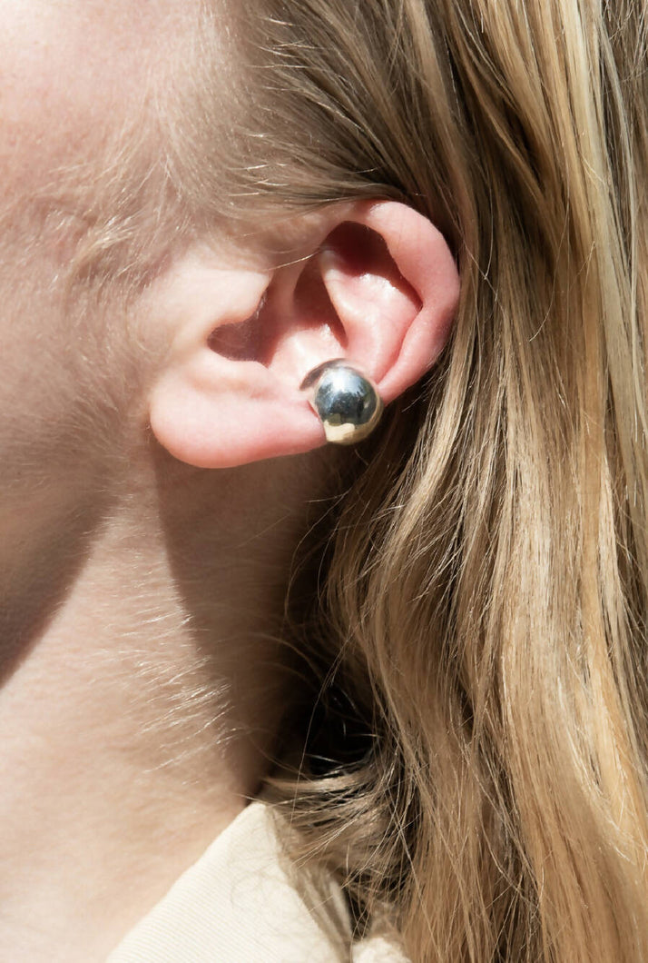 shiny, small earcuff, hugging your ear tightly with its round shape. like the moon, this earcuff changes its appearance depending on how its illuminated by the light.