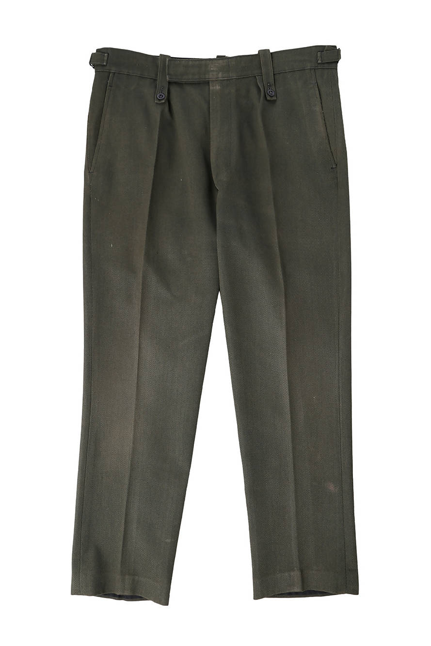 English barrack trousers with large belt hoops and lined trousers bands used in the 60’s.