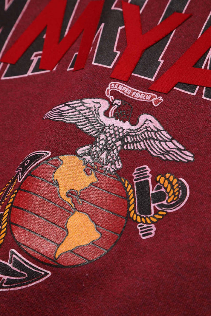 A physical training uniform is a military uniform used during exercise, calisthenics, drills, and in some cases, very casual periods of time (off-duty time during Initial Entry Training in the U.S. Army, for example). The United States Armed Forces require use of a physical training (PT) uniform during unit exercise (including formation runs, calisthenics, and conditioning exercises). In this specific item OD green with black Marines logo and USMC lettering on the left chest of the hoodless sweatshirt, and the same design on the left thigh of sweatpants. PAST - 90’s vintage sweatshirt from different Army and Naval Academies.