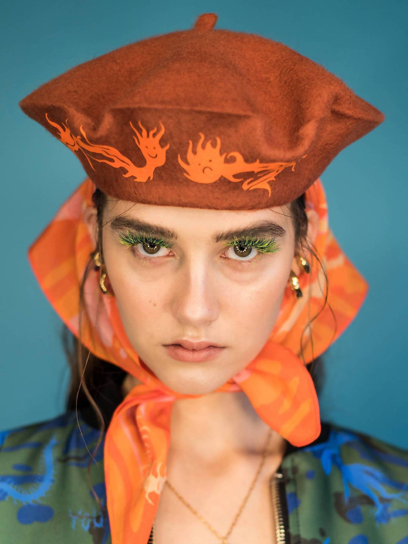 • Beret MOOD ginger from the collection "Something is nice there over the clouds" with original graphics by www.mateuszkolek.com