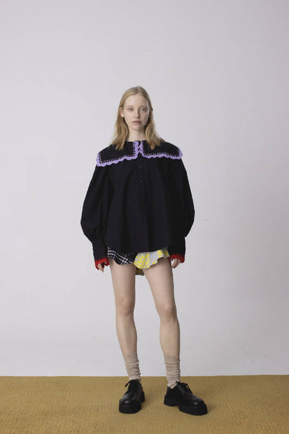 Cavia Poplin Patchwork Frill Shirt Hermione