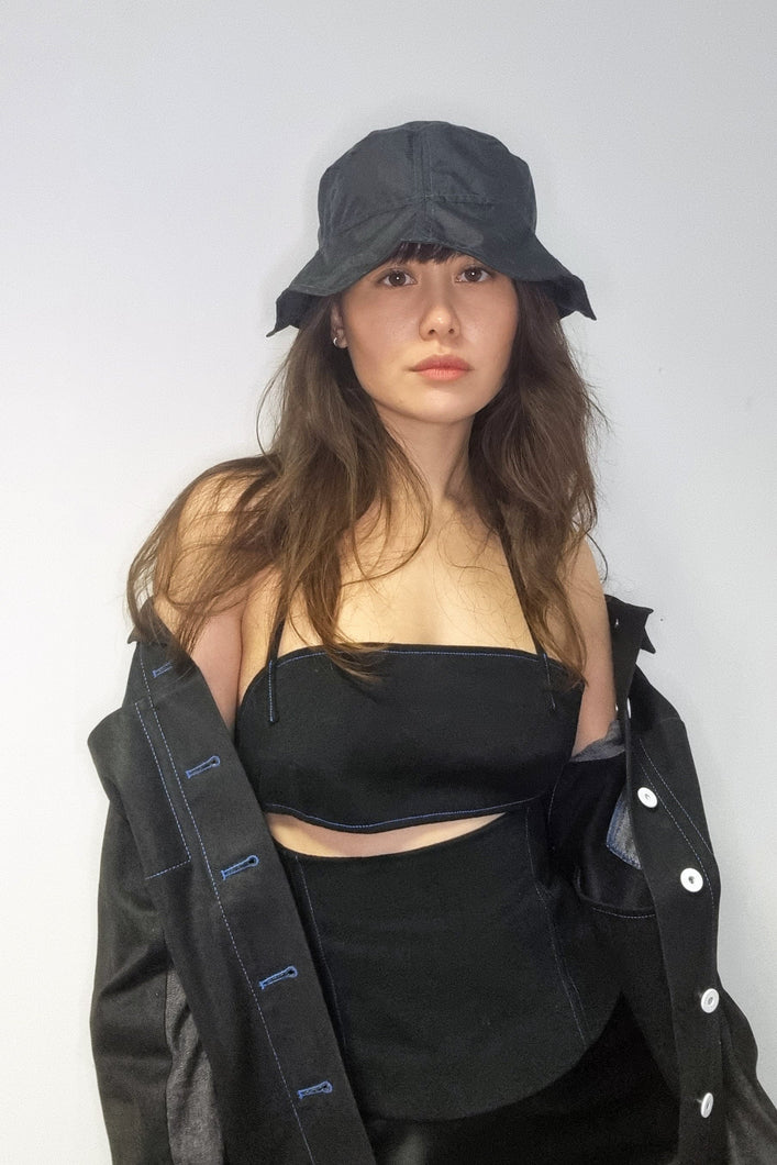 The Hexy hat has been given a makeover for winter - embrace the rain in this Limited Edition style crafted from a pair of waterproof trousers.
