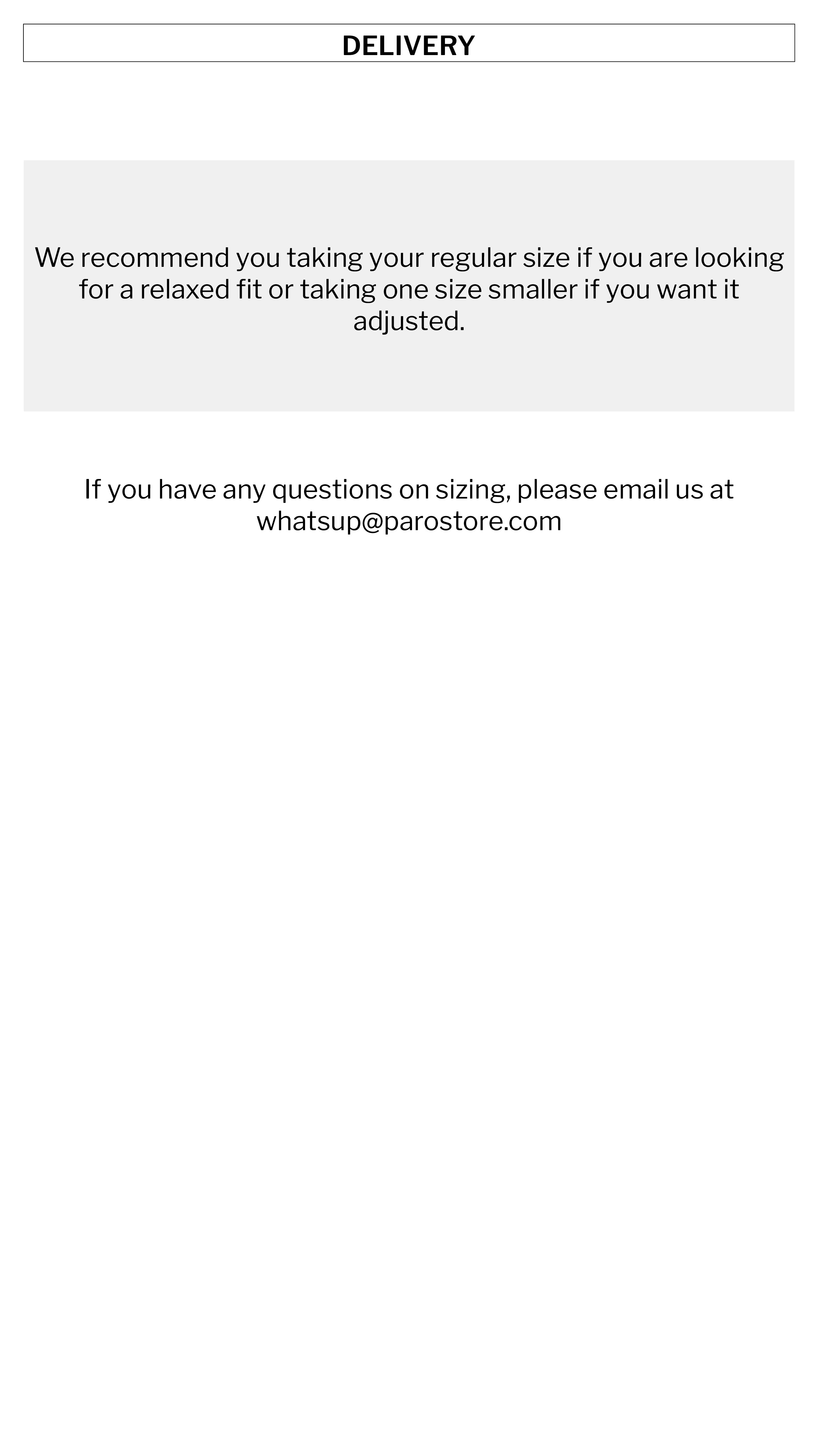 We hope you're happy with your product, but if you aren't please contact us via whatsup@parostore.com for exchange and return information. Exchanges will only be offered for a different size in the exact same item originally ordered.