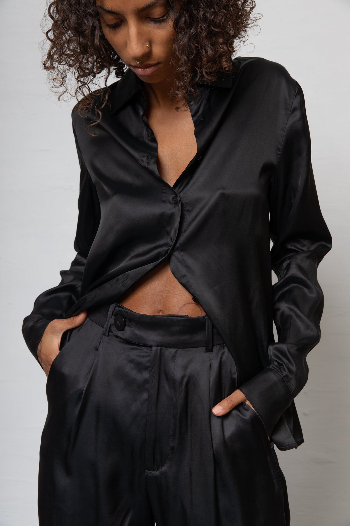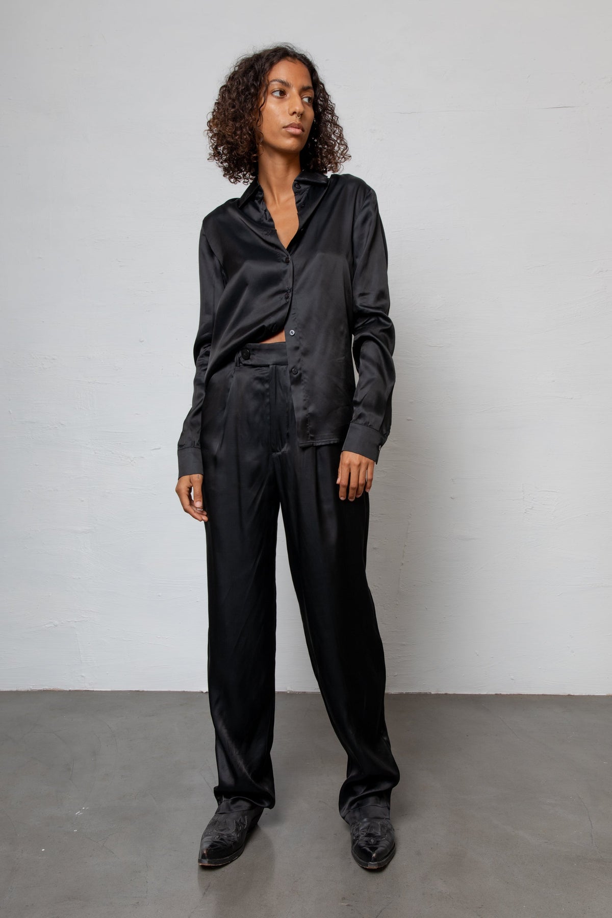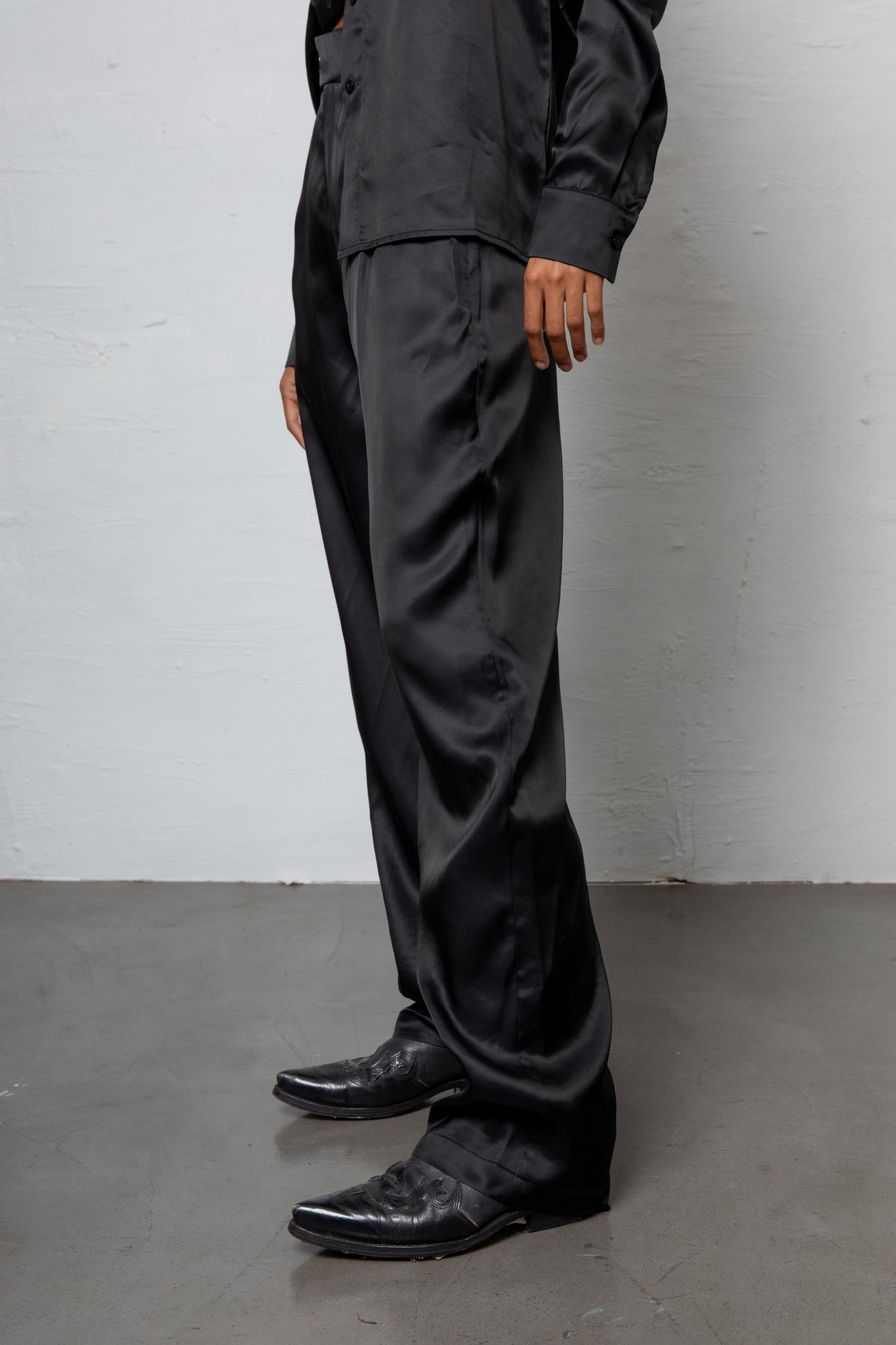 Can Pep Rey looks to the 1970s to craft these suit trousers – the unisex legs are an ideal complement to the expressive dances of the era’s disco music. T- Belt-looped waistband- Flat rise, slip pockets- Suit legs, pressed creases- Welt back pockets- Concealed front zip, hook and bar