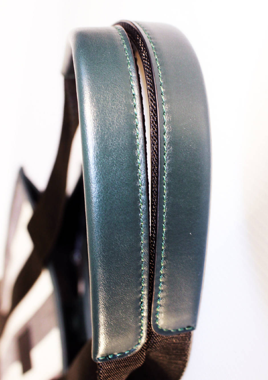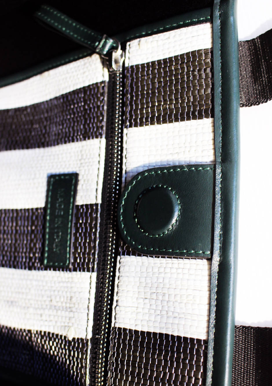 - ASGAR_BW Stripe w. black straps, dark green leather details