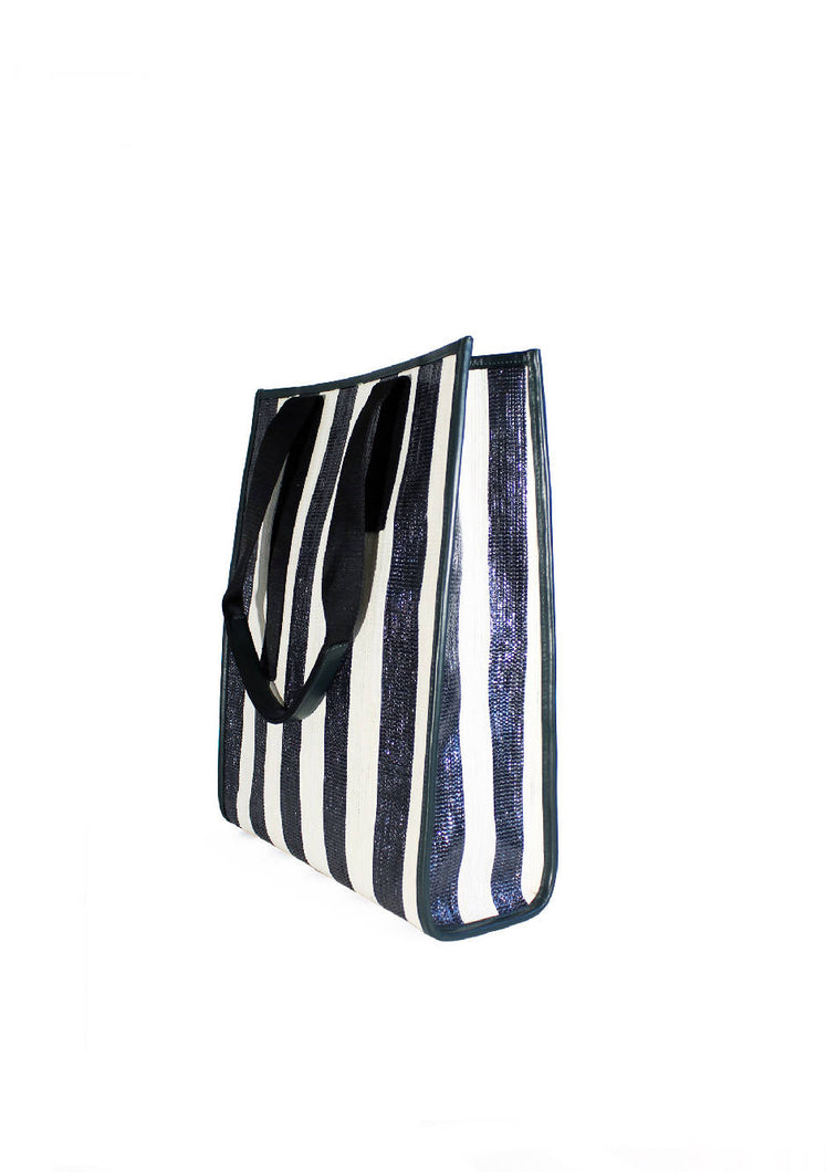 Handwoven up-cycled plastic variations in the tones of colour and pattern