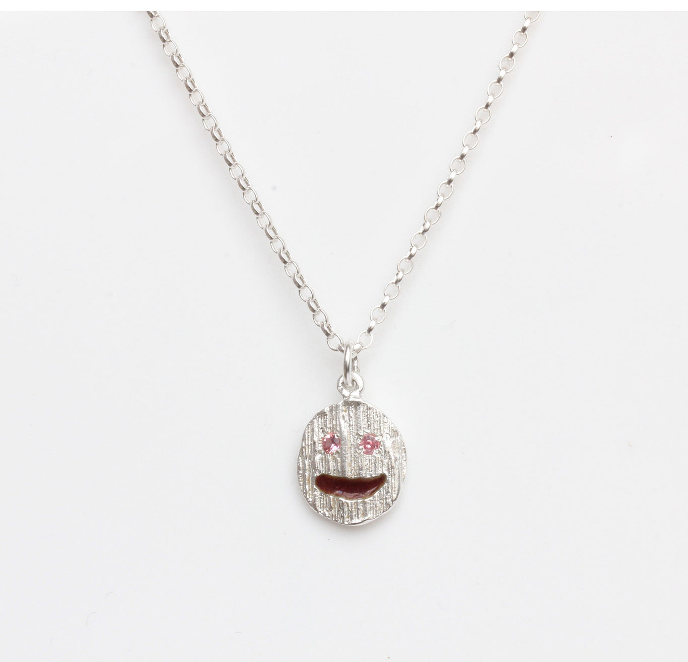 Want to wear a self-portrait on your neck?! Beautifully textured pendant made from a solid recycled silver cast from natural sea bark found close to Eily's home on the West coast of Ireland. Vitreous glass enamel has been carefully fired onto the piece where the mouth is using the specialist technique "Plique a Jour". This technique allows light through from each side and is done in Eily's kiln in her studio.