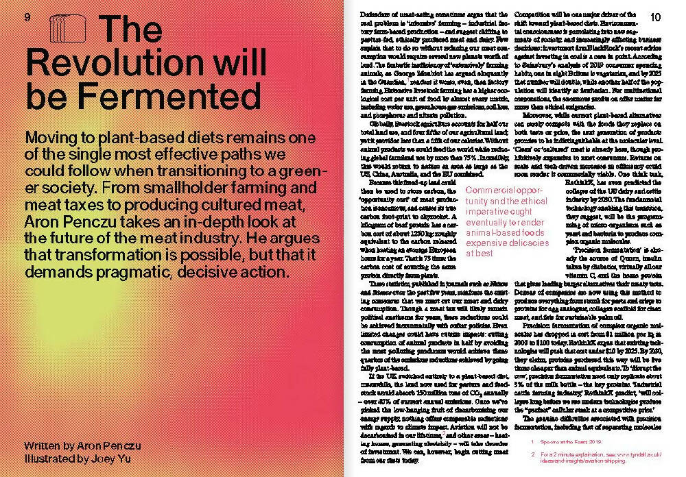 In issue 5, we explore new approaches to ideas about climate change. Some articles propose big green changes which might fit into a ‘post-corona’ portfolio of green proposals. Some reflect on the outcomes of existing green approaches, and others interrogate the purpose and ethics of new technologies that aim to improve