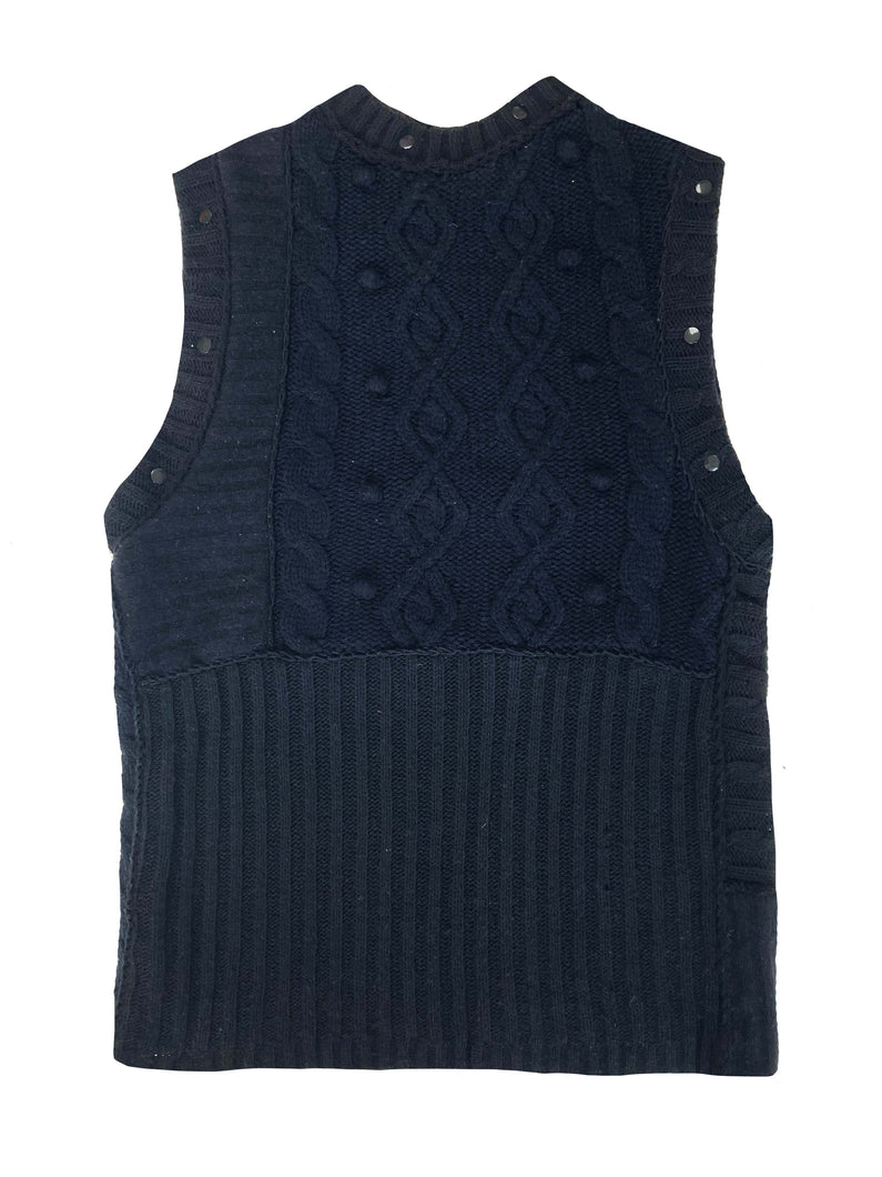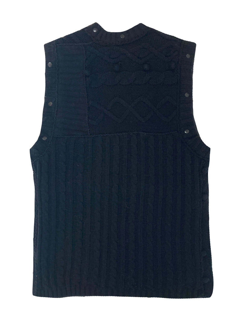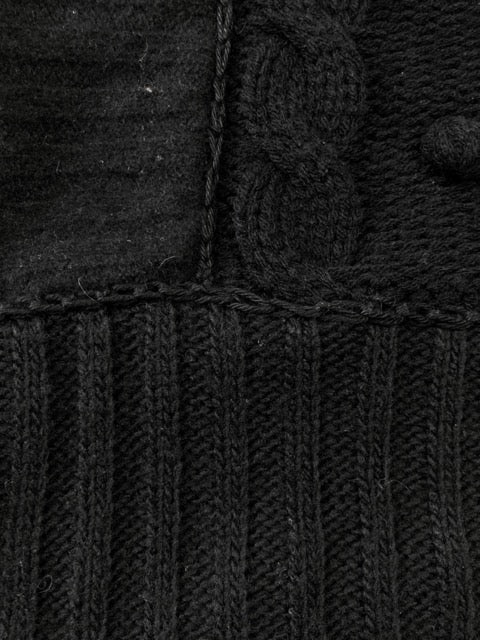 One of a kind spencer. This spencer is made from black patchwork knits. Finished with hand made chain stitches in black.