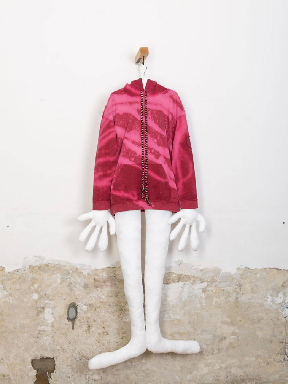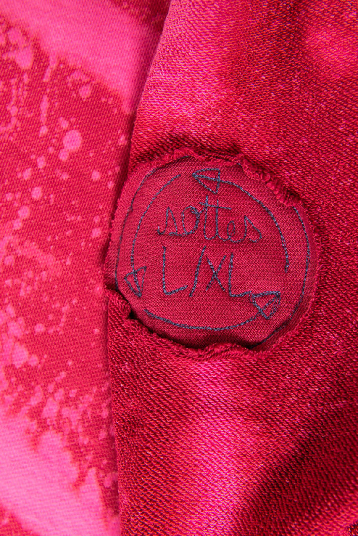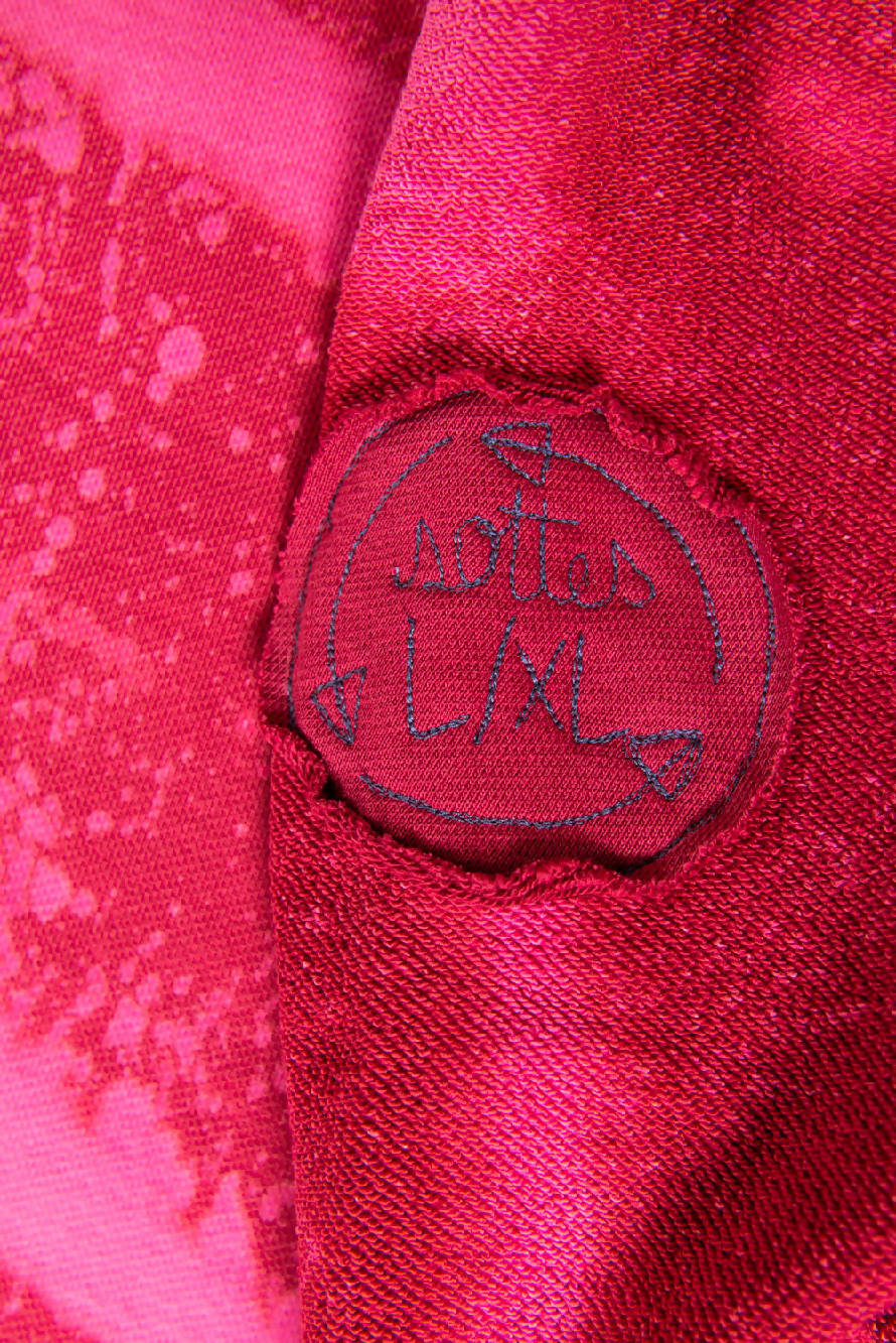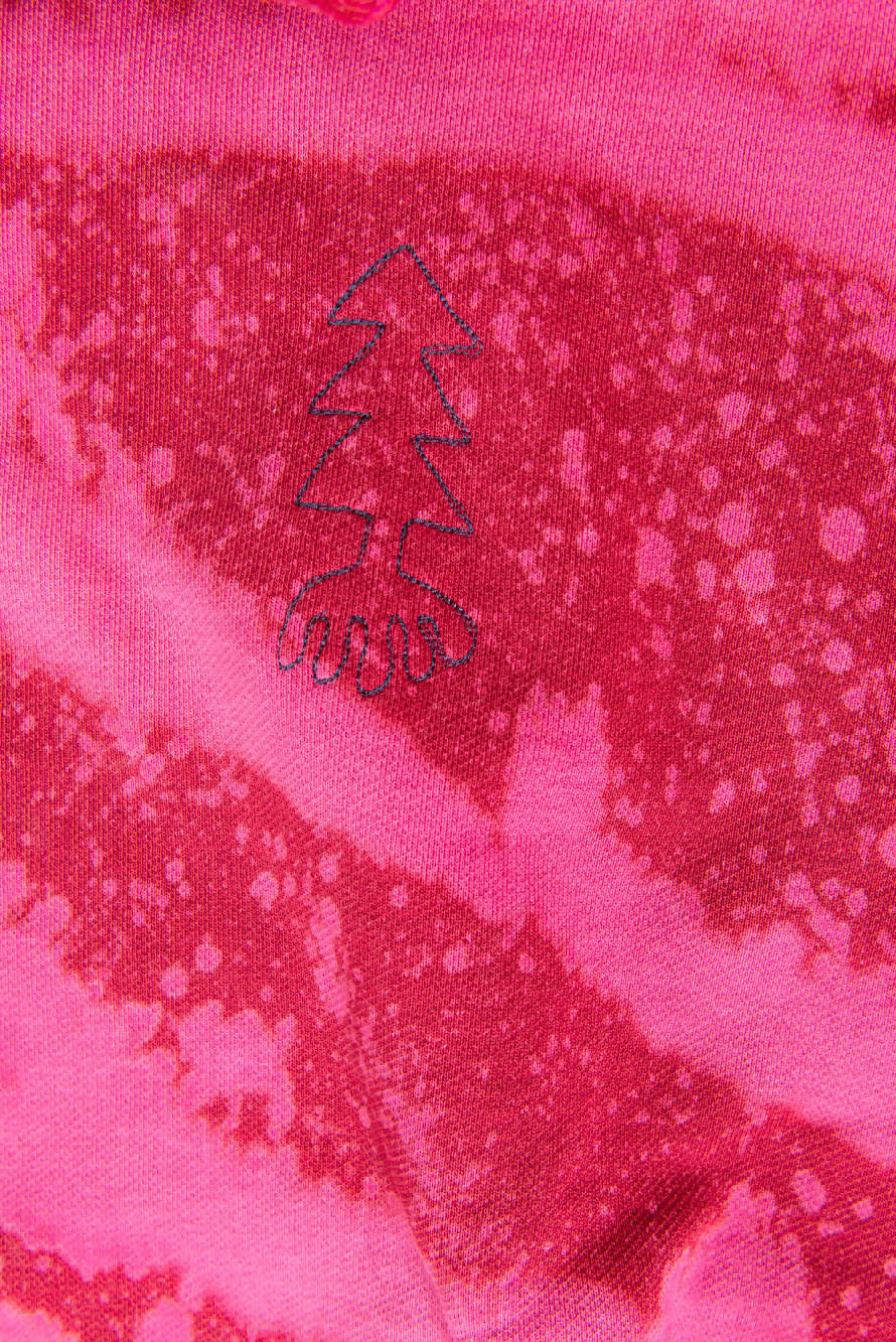 - Hand crotched drawstrings at hood. Each hoody goes through a hand-dying process using a water gun to alter the fabric’s original colour and to create lines.